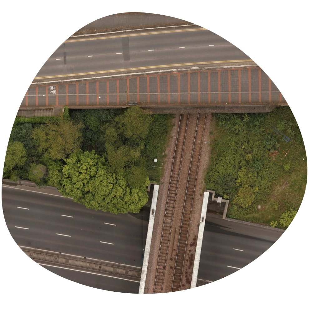 Monitoring highway risks, such as tree hazards, by survey aerial footage. This data helps identify potential threats, enabling timely maintenance and ensuring road safety.