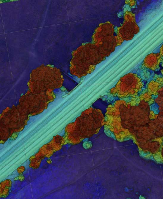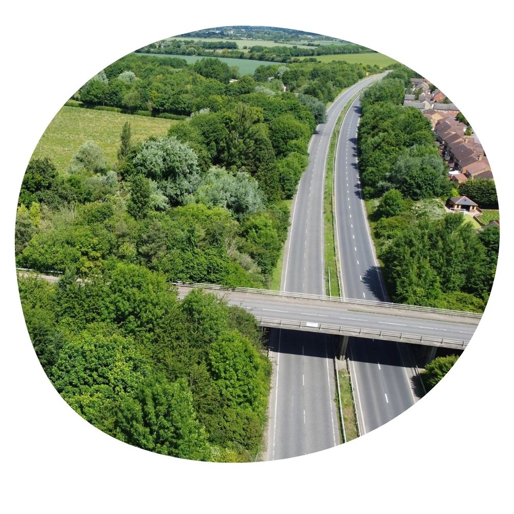 Monitoring highway risks, such as tree hazards, by survey aerial footage. This data helps identify potential threats, enabling timely maintenance and ensuring road safety.